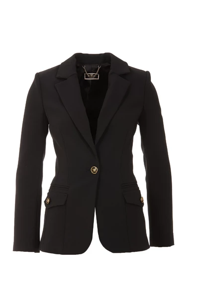Elisabetta Franchi Jackets Black Jacket, Double Breasted Sluiting, Pockets