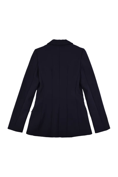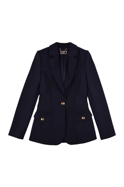 Elisabetta franchi jassen zwarte strakke pasvorm met lange mouwen enkele knop sluiting dubbele zakken: bovenste las- en onderste flap verrijkt met knop geëmailleerde knoppen detail met goudlogo -samenstelling: polyester 96%; Elastaan 4%
