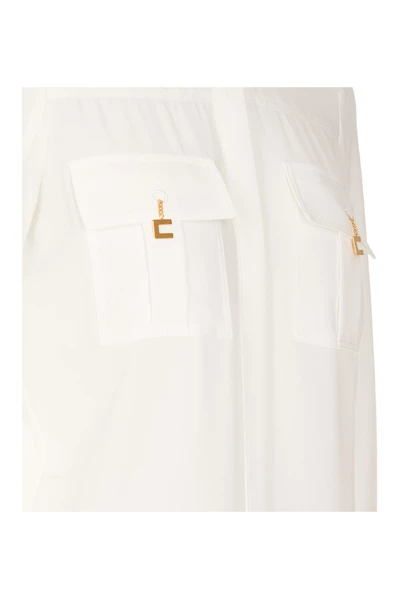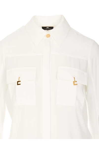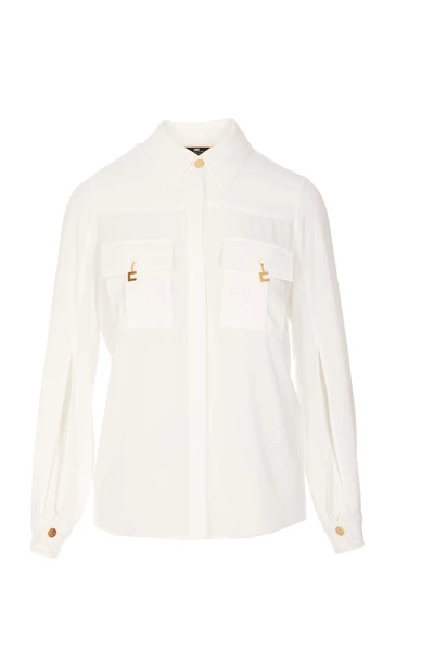 Elisabetta franchi shirts blanke vrouw shirt, frontale knopen sluiting, klassieke kraag, plaque -logo, frontale zak, frontalbuttons op manchetten