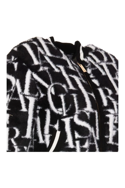 Elisabetta Franchi Coats Black Woman Jacket, Zip Closure, Logo All Over, Mohair Effecrec