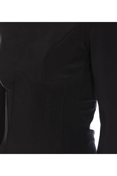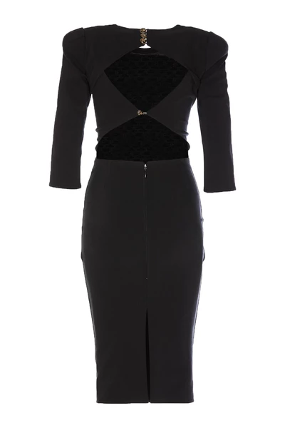 Elisabetta -franchi -jurken zwarte vrouw jurk, gouden knopen op de achterkant, ritssluiting aan de achterkant, versterkte schouder, achterhals, 3/4 mouwen, rond