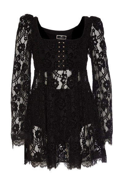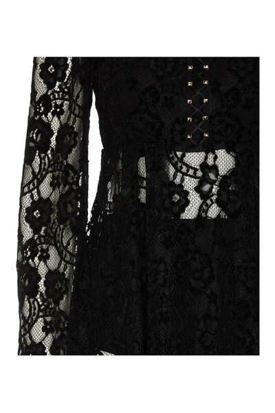 Elisabetta franchi jurken zwarte vrouw jurk, veters effect, coulotte detail, frontale mini studs details, laterale zip sluiting