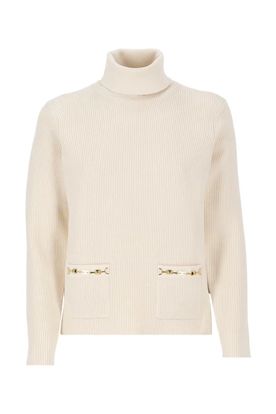 Elisabetta Franchi Sweaters – Black Elisabetta Franchi geribbelde trui voor vrouw – Hoge nek – Lange mouwen – voorzakken met stedenklem