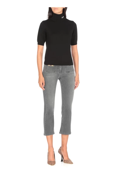 Elisabetta Franchi Jeans – Gray Elisabetta Franchi Cotton Jeans for Woman – Front Button and zip bevestiging – Vier spleetzakken – Golden Elisabetta Franchi vooraan