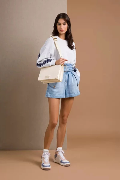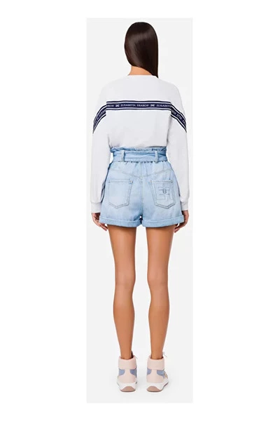 Ruw gesneden broek met brede been met scheuren. Verrijkt met een licht goudaccessoire.
