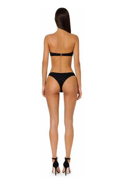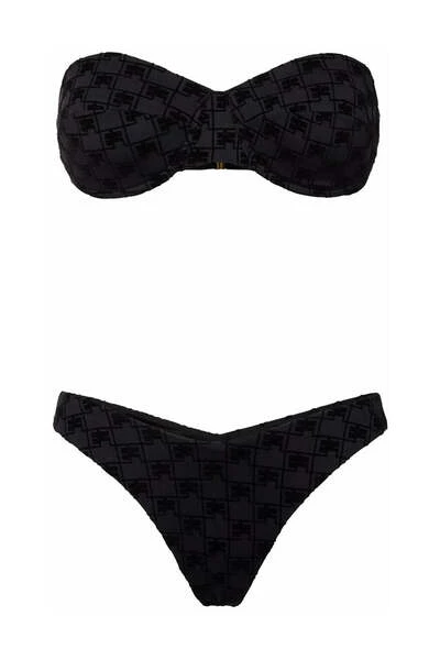 Elisabetta Franchi Zwarte tweedelig monogram bikini. Tweedelig High-rise belet. Materiaal: 91% Polyamide, 9% Elastaan Productstijl-ID: CS36B21E2110 Deze beschrijving is automatisch vertaald.