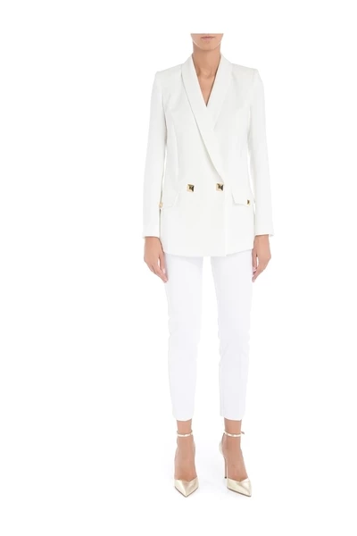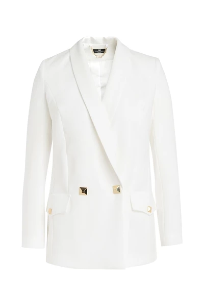 Jacket Elisabetta Franchi Ivory Color Straight Model. Grote Rever Maxi -knoppen met Golden Bolt Golden Pockets Pockets Samenstelling: 100% polyester