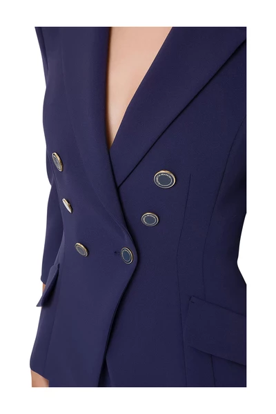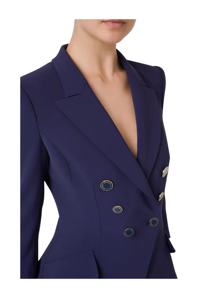 Elisabetta franchi blauwe jassen dubbele rijs stretch crepe jas blauw kleur strak pasvorm Wash gemaakt in Italië