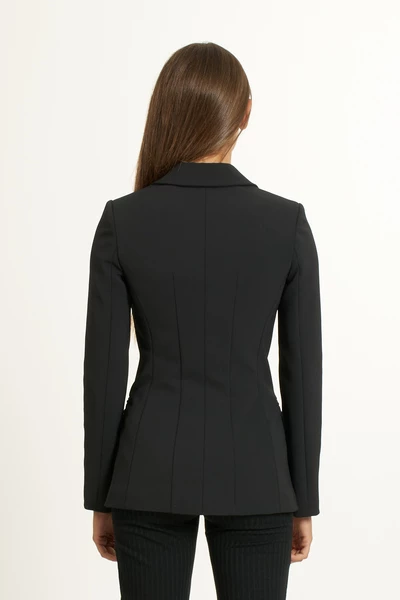 Elisabetta franchi jas sluiting met enkele logo -knop, lange mouwen, dubbele zakken: bovenfilet en onder een klep verrijkt door een logo -knop, strakke pasvorm. Het model is 1,69 cm hoog, draagt maat 40 samenstelling 96% polyester, 4% elasten – 100% voering polyesterollezione tot 22