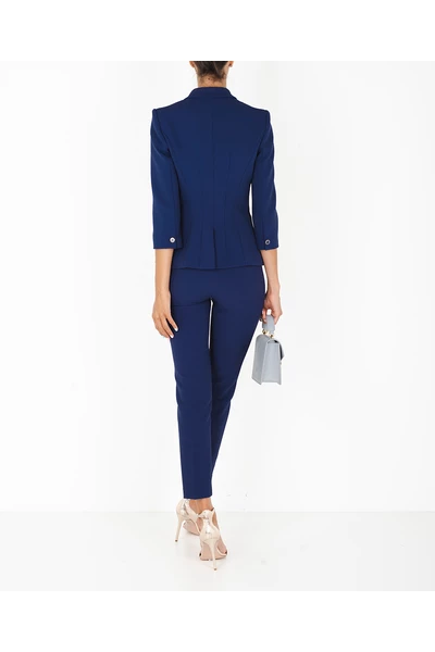 Elisabetta franchi jas in dubbele scheuren. V -Neck met Rever en Slee op drie vierde. Budgetzakken, Slit Slide. Dubbele beperkende sluiting met logo -wijzigende knoppen. Het model draagt ​​maat 40.