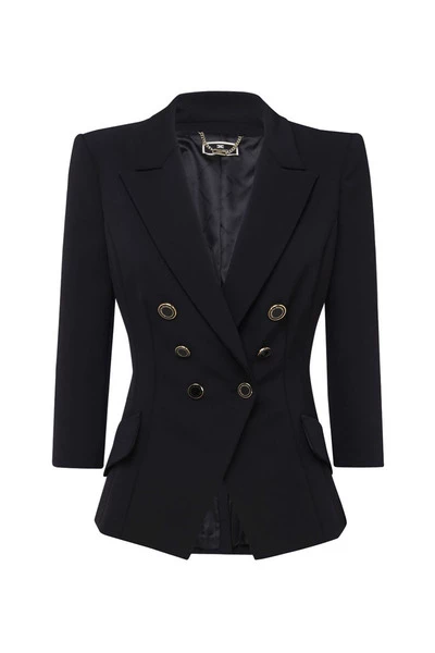 Elisabetta Franchi Gewatteerde Jassen Padded Quilted Coat With Removable Hood Black