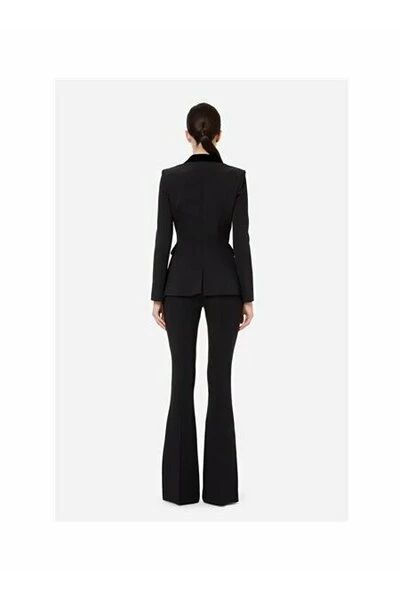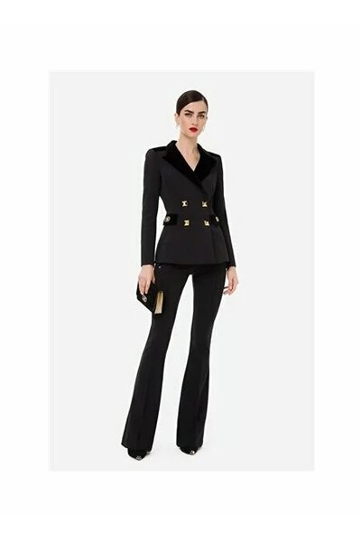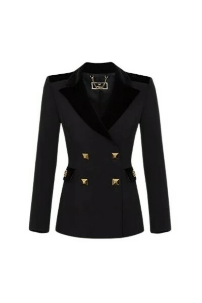 Dubbele jas met een strakke lijn met een licht bovenaan gebaseerd lijfje, gemaakt van dubbele steek, gekenmerkt door knopen in de vorm van een maxi bezaaid in gouden metaal, galm, schouderbanden en fluweelplekken. De Patte host centraal een logo -vormige metalen accessoire in een ovaal met een oppervlak bezaaid met micro -studs. Technische beschrijving • Double -breasted jas • Herende lijn • Dubbele crêpe stretch • Maxi Borchs Gold Bottons • Rever • Logato -accessoire op Patte • DRIT Fitting Samenstelling Artikel 96%Polyester 4%Elastaan