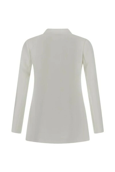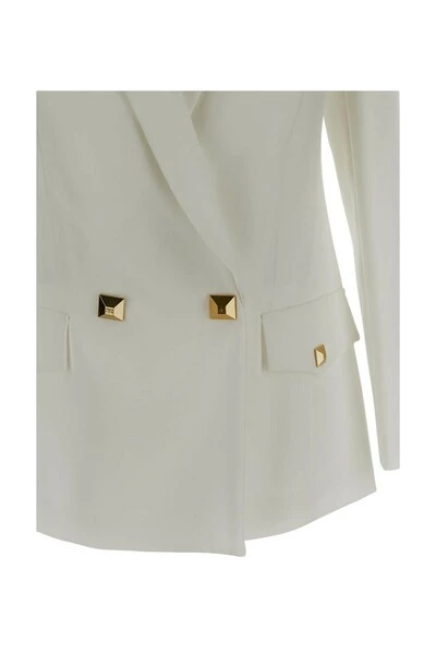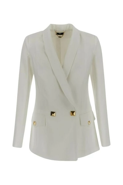 Elisabetta Franchi Ivory Polyester Medium Blazer Jacket met sluiting met dubbele borst en goudkleurige studknoppen.