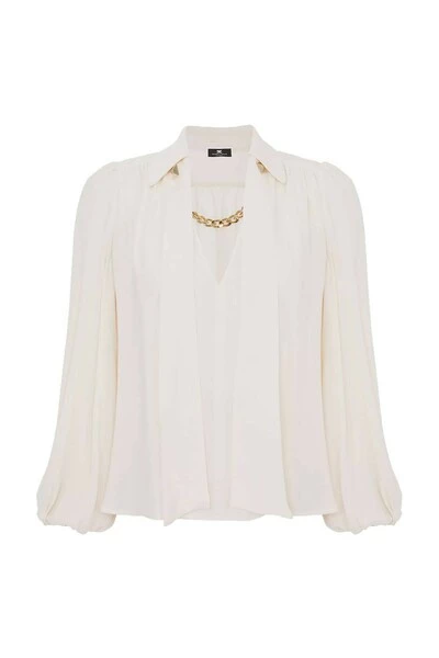 Elisabetta franchi blouse gemaakt van boterkleurige viscose met v-hals verfraaid met een decoratieve ketting in gouden metaal. Enigszins ballonmouwen met elastische manchetten. Ontspannen pasvorm.