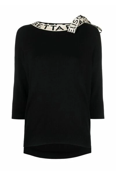 Elisabetta franchi truien logo-print knoopdetail jumper van Elisabetta-franchi met zwarte, logo-print bij de halslijn, knoopdetails, ronde nek, lange mouwen en rechte zoom.
