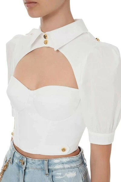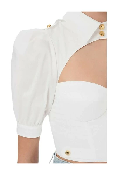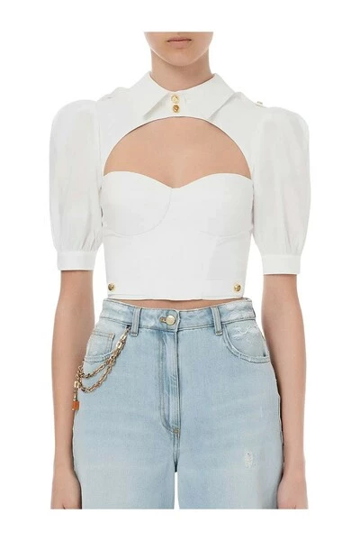 – Ottoman Taffeta Top – Man Kraag – Opening op de halslijn – Bustier -lijn met ers – Samenstelling: 100% polyester – Made in Italië