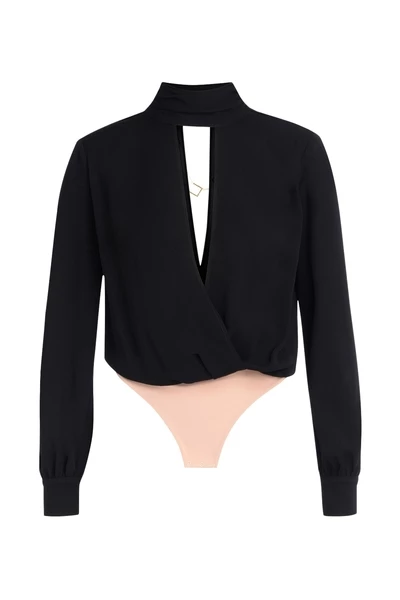 Body Shirt Elisabetta Franchi Black in Georggette met charmes. Retro verfraaid met charmes en strass op de achterkant met compositieknoppen: 100% viscose