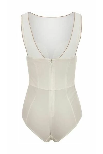 Technische jersey bodysuit met diepgaande sweetheart halslijn ondersteund door vlees tule -riemen om een naakteffect te geven. Gesneden in de taille en Coulotte.- Jersey Bodysuit