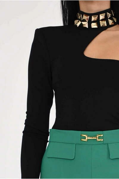 – In Jersey-Monospalla met lange mouw- nek met maxi getriggerde studs-samenstelling- Samenstelling: 95% viscose 5% elastaan- gemaakt in Italië