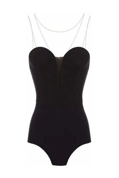 Body van technische jersey met diepe en hartvormige halslijn, ondersteund door tulebandjes voor een naakt effect.