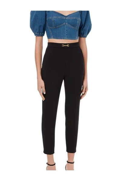 Dubbele crêpe broek broek PA01021E2-110 zwarte elisabetta franchi