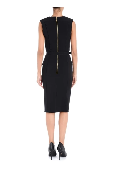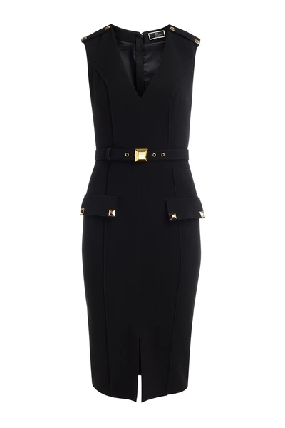 Ik woon in Tubino Elisabetta -franchi in zwarte stretchstof met gecoördineerde riem. Samenstelling: 95% polyester, 5% elastaan