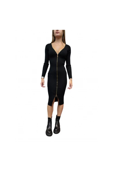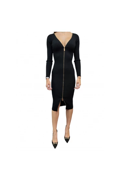 – Fabriquée en Italie Samenstelling: 49% viscose 30% polyester 21% Polyamide Draag De Elisabetta Franchi ritsmesh maxi -jurk met een paar pompen voor een speciale gelegenheid, of met een paar laarzen voor een meer schommelend effect. – Jurk van Elisabetta Franchi – Kleur: zwart – Gouden rits – geribbelde gebreide – lange mouwen – V -hals – slanke pasvorm gemaakt in Italië
