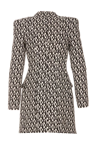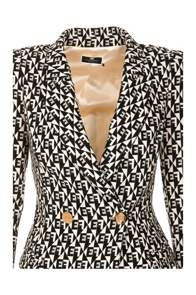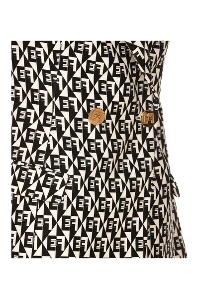 Elisabetta Franchi Jurken Zwarte mini jurk, dubbele borstsluiting aan de voorkant, all over logo, verstevigde schouder, zak aan de voorkant