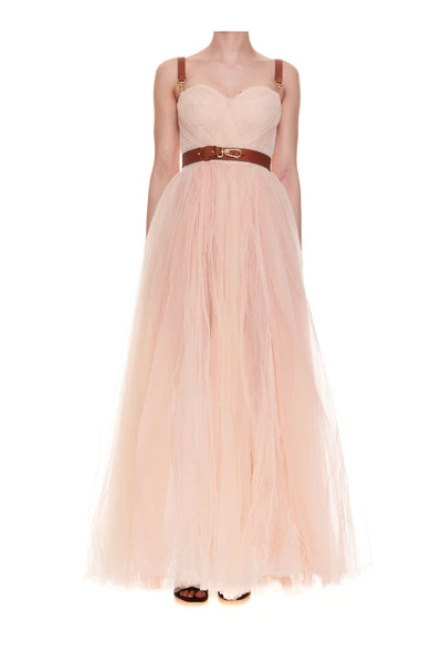 Elisabetta franchi jurkt vrouwelijke jurk met ritssluiting op de achterkant, riem op taille, tule detail