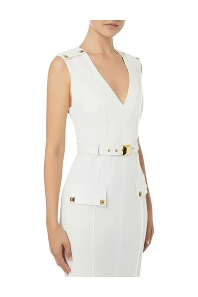 Vanicate V -Neck Dress Maxi Pyramid Borchia Fabric Belt met goud 95%PL 5%EA