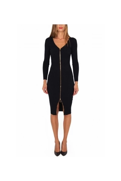 Longuette -jurk in Coast Shirt met centrale rits die langs de halslijn rijdt hechtende zwarte kleursamenstelling 49% viscose 30% polyester 21% polyamidekleding gedragen maat 42 Modelhoogte 1,80 cm maat 40