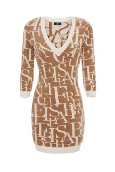 Long -Sleeveved Jacquard Letter Jurk en met V -Neckline -halslijn • Korte jurk • Lange mouw • V • Jacquard lettersamenstelling Artikel 89%Polyamide 11%viscose