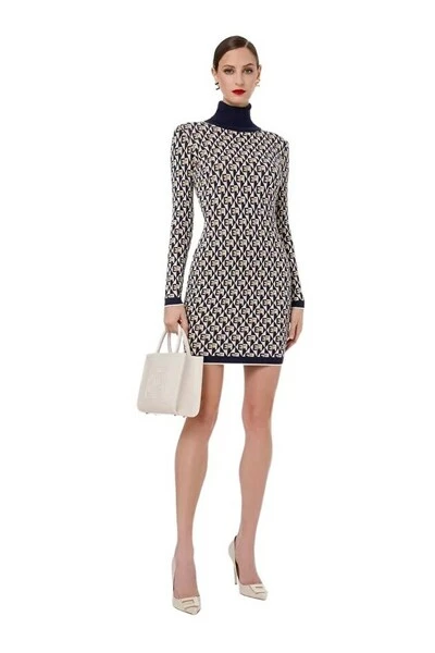 MIDI -jurk in Jacquard Hostine Turtleneck Ribs 94%Lang VI 3%PA 3%EA