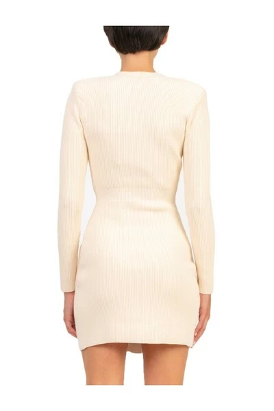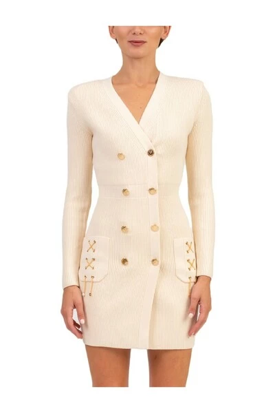 Dubbele besmet met boter in Jearsy Jearsy, drukknopen, AV -halslijn, lange mouwen, uitgeputte, voorzakken met een decoratieve ketens, gevoerde schouderbanden 66% viscose 29% polyester5% polyamide