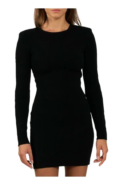Mini -jurk in het ELISABETTA -franchi -shirt, emboepeerd overal in het logo, bemanning, lange mouwen, schouderbanden, gekleed vasthouden Het model is 1,69 lang, draagt maat 40 -Comp 55%viscose 23%polyester 22%polypropylence ai22