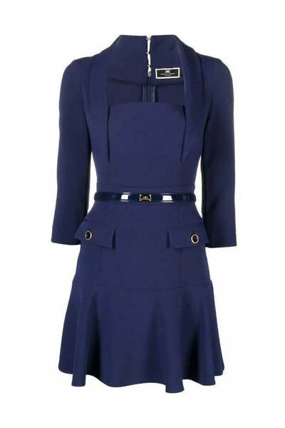 Korte jurk Elisabetta franchi AB18726E2 Korte scheuren in stretchscheuren met vierkante halslijn, 3/4 mouw, wijd uitlopende rok aan de onderkant. Verwijderbare riem met logo -plated plaat. Samenstelling: 95% PL, 5% EL