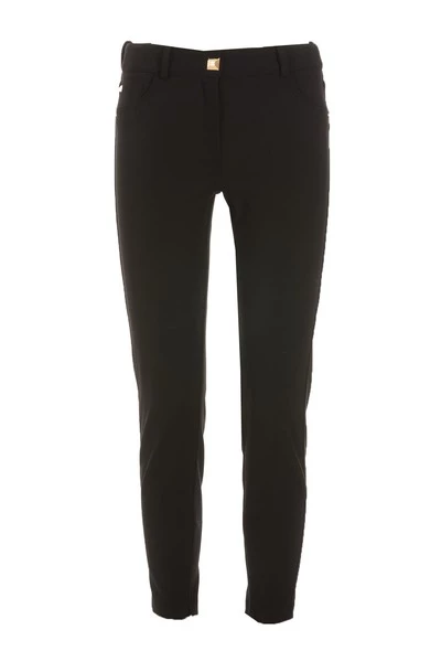 Elisabetta franchi broek zwarte broek met frontale zip- en knoopafsluiting, zakken, reguliere pasvorm, studs details