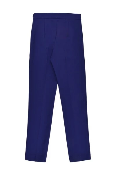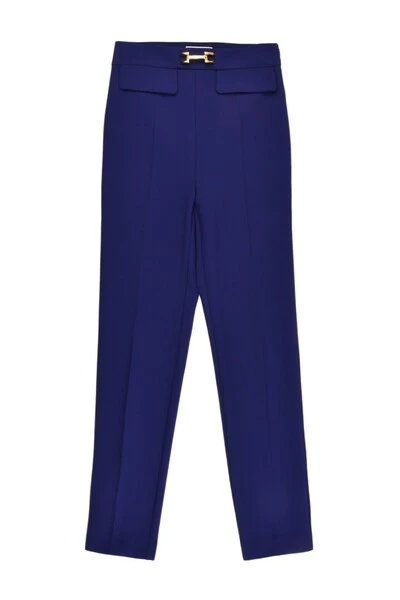 Elisabetta franchi broek blauw magere stretch crêpe broek tailleband verfraaid met studeffectlogo en centrale plaque flappen aan de voorkant ingebracht in de band
