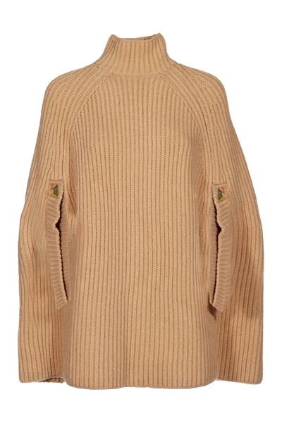 Elisabetta Franchi Sweaters wollen mix cape, in Engelse rib, met hoge kraag en nieuwe studklemaccessoire genaaid aan de halslijn.