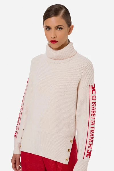 Oversize jersey met bands met MK82S27E2-Ay9 Butter/ Red Elisabettta Franchi