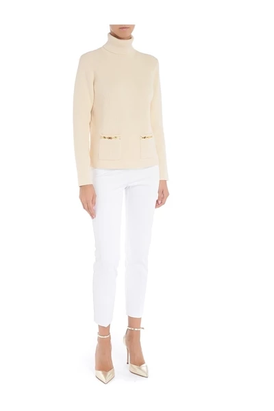Elisabetta franchi crema cosinus shirt. Hooghals rechte modelzakken met gouden klemsamenstelling: 65%viscose, 28%polyester, 7%polyamide