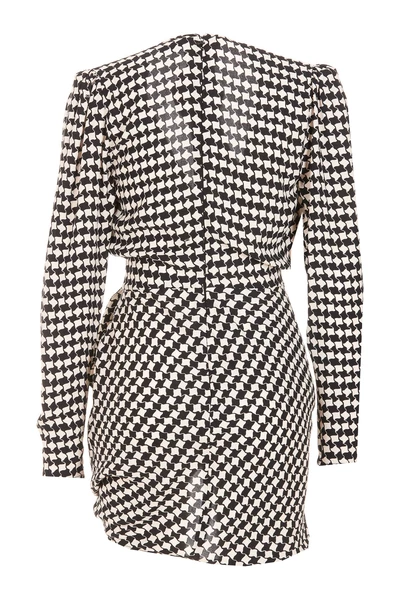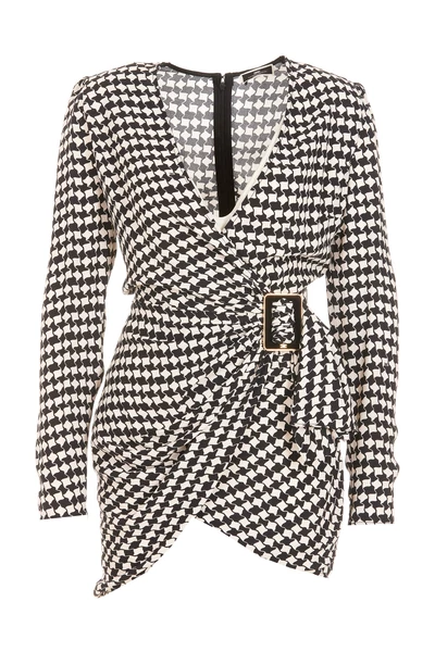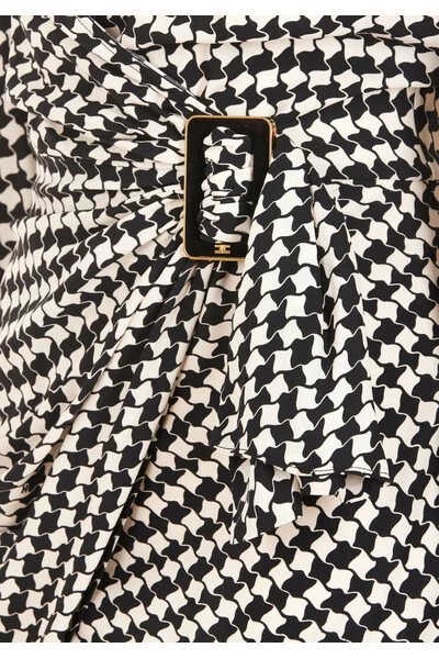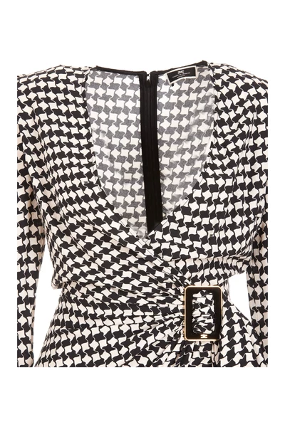 Elisabetta franchi zwarte mini -jurk met rugzipafsluiting, frontale details, geometrische print, ritsdetail op manchetten
