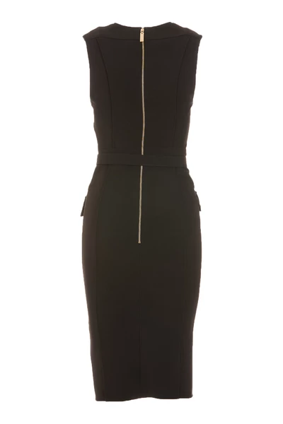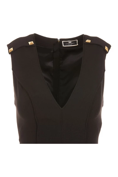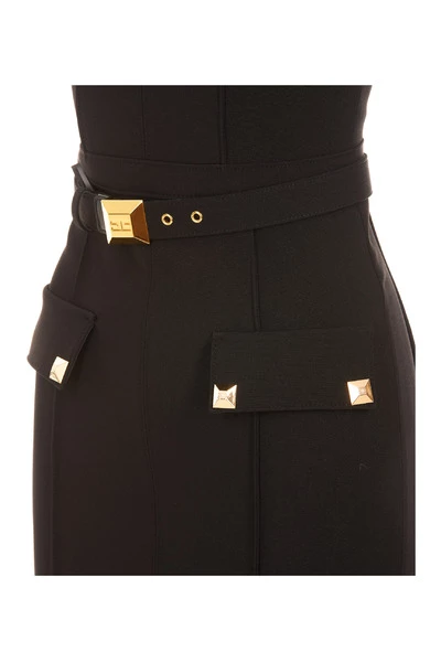 Elisabetta franchi zwarte jurk met rugzipafsluiting, studs details, mouwloos, riemdetail