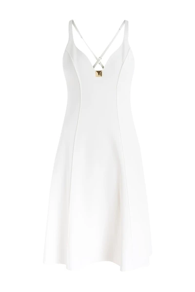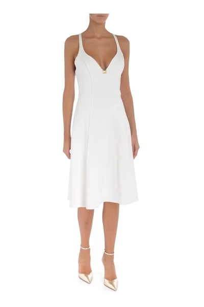 MIDI -jurk Elisabetta -franchi in witte scheuren. Crossing on the Back Samenstelling: 96% polyester 4% elastaan