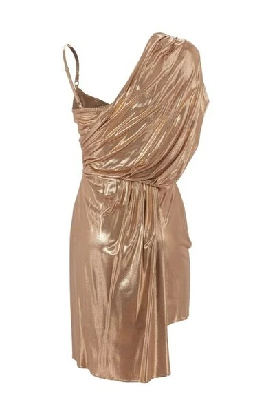 Korte jurk met gedrapeerd effect met asymmetrische rok en dunne schouderband. Sluiting met zijrits. Gemaakt in Italië.