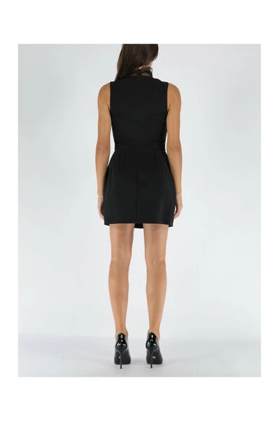 Korte damesjurken in stretchscheuren ondertekend Elisabetta -franchi. Elegant en kostbaar met de charmes ketting en strass aan de nek vooraan. Zachte tule detail op de bovenste en kraag. Lichaam met voorgevormde kopjes en diepe V. rok, licht meer, groot met filmen en zijzakken. Achteropening met onzichtbare rits. Merk: Elisabetta Franchi Artikelcode: AB31427E2 Samenstelling: 95% polyester, 5% elastan. TULLE -inserts: 100% polyamide. Lijn: 60% polyester, 40% elastan. Pass: het model is 164 cm hoog en draagt maat 40.