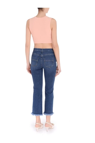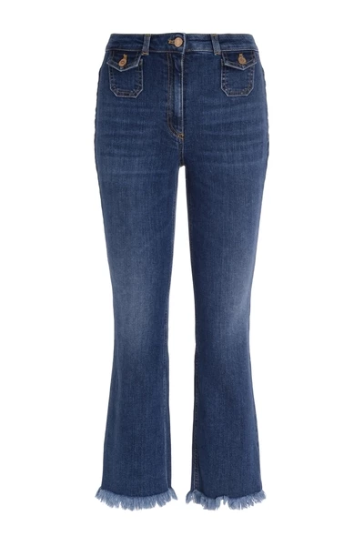 Blue Franchi Elisabetta Jeans met frazied bodem en logo -ed knoppen. Samenstelling: 98% katoen, 02% elastaan