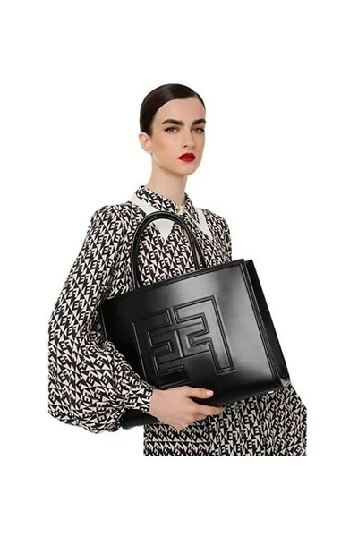 Sonte schuurmiddel Synthetic Leather Shopper, met reliëflogo en profielen, buisvormige handgreep. Technische beschrijving • Shopper in nep synthetisch leer • Logo op de reliëf van de voorkant • Reliefprofielen • Maatregelen: 37 x 29,5 x 11 cm Samenstelling Artikel 50%Polyurethaan 40%Polyester 10%Katoen