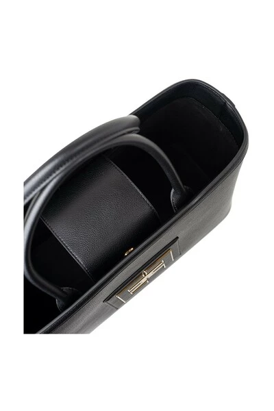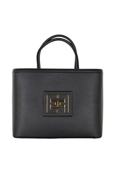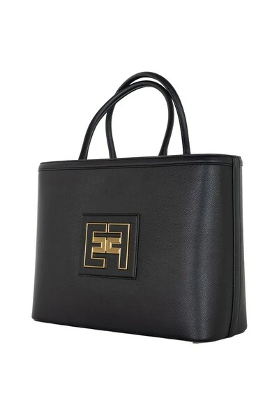 Elisabetta -franchi -tas in vergelijkbaar leer. Dubbele handgrepen. Muurzak. Maxi frontaal metalen logo licht goud. Sluiting met een magnetische knop. (28x38x15cm)