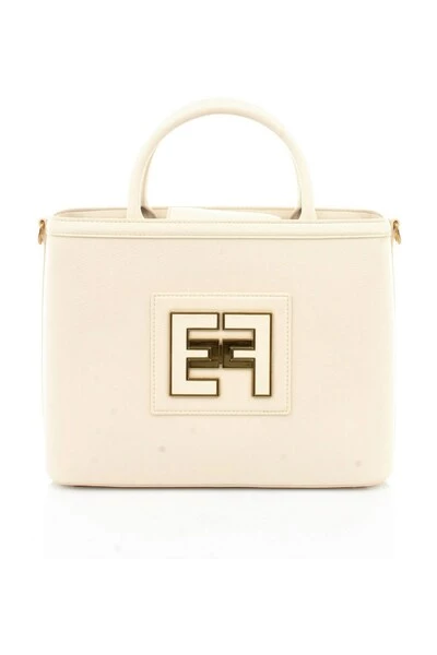 Elisabetta franchi hand -logged boter baghandmodel EF -logo in metalen goudkleurafsluiting met stijve handgrepen verwijderbare schouderbanden